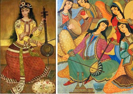 دریکی از نقاشی های عمارت هشت بهشت اصفهان به تصویر درآمده است و بانویی مشغول نواختن