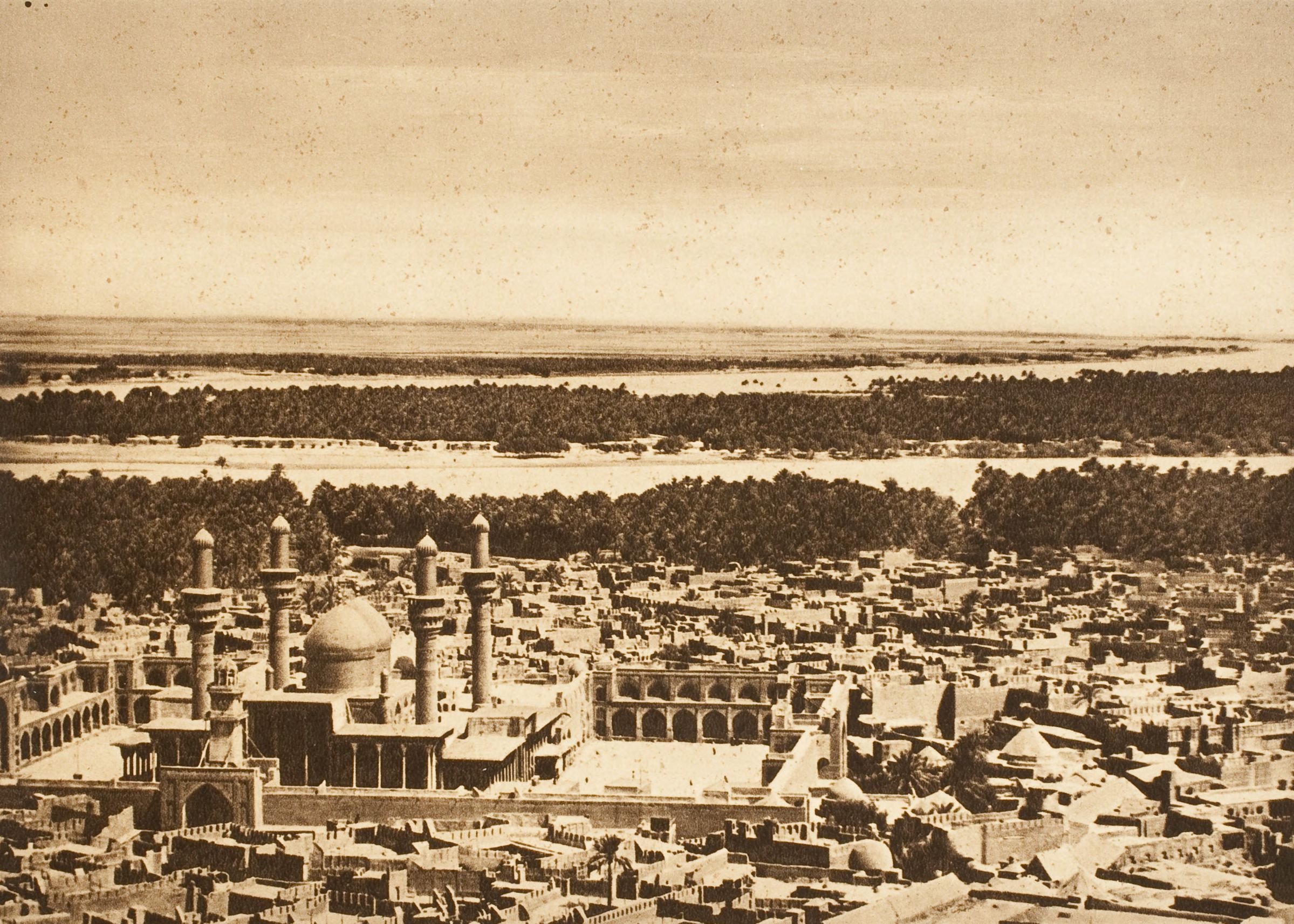 - Iraq. Baghdad. Aerial view of the Mashhad al-Kazimayn (مشهد الكاظمين – tombs of the 7th and 9th imams), ca. 1923. British Royal Air Force official photograph.