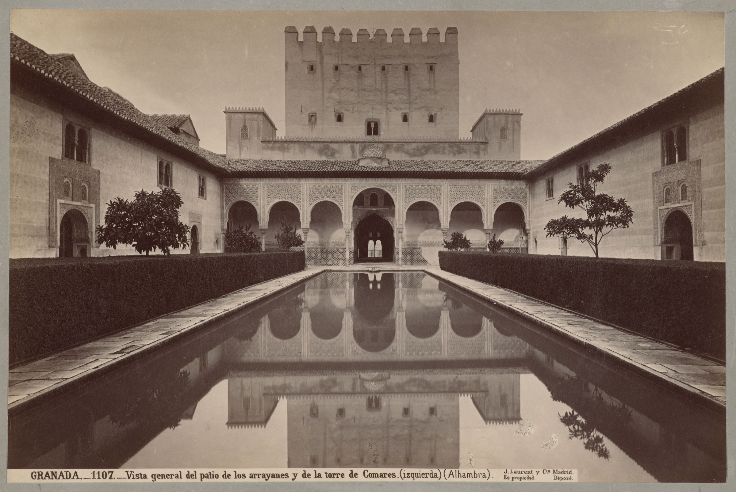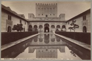 - Spain. Granada (غرناطه). Courtyard in the Alhambra palace (قصر الحمراء), ca. 1870. Photograph by Jean Laurent.