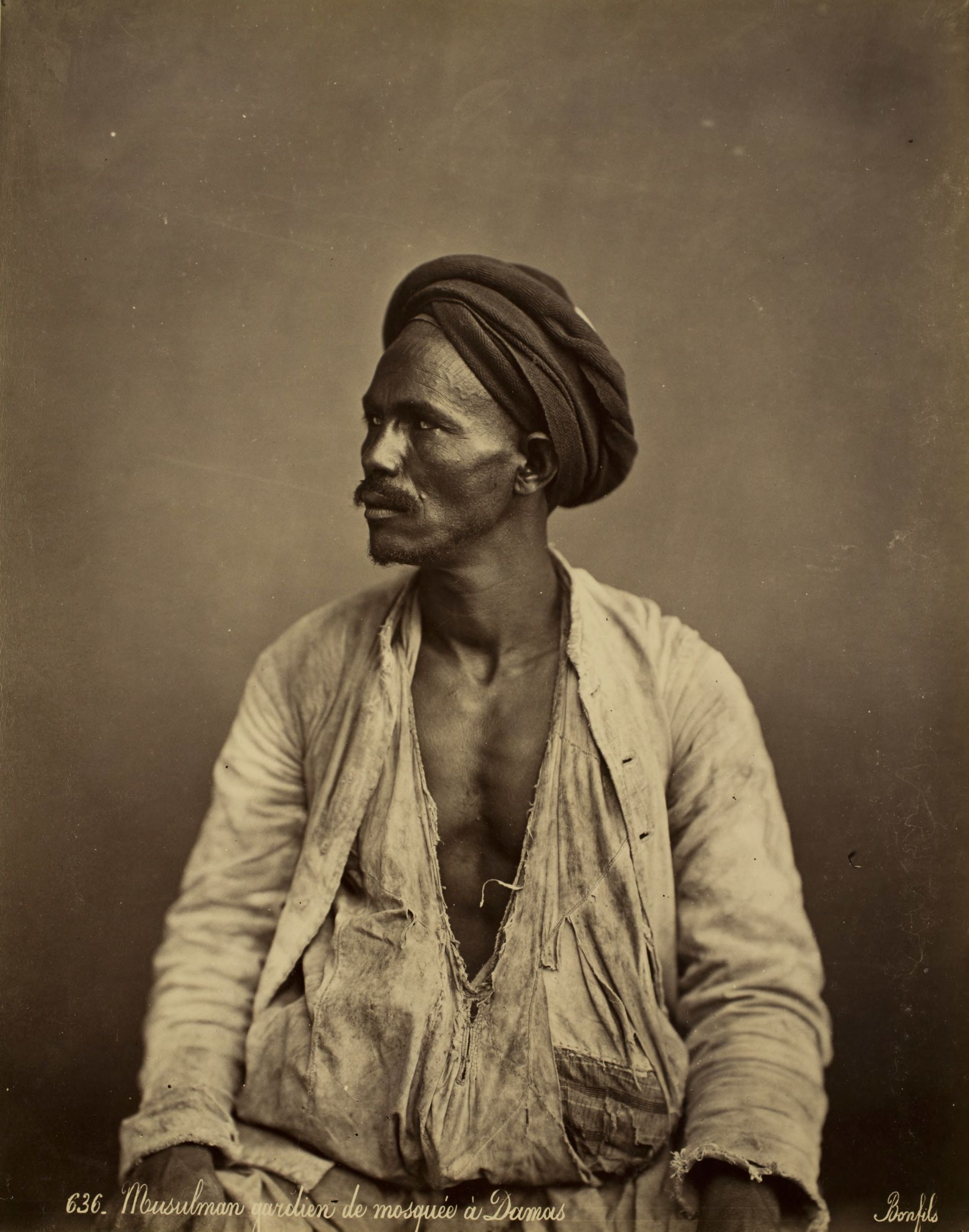 - Syria. Damascus. Guard of a mosque, ca. 1870s. Photograph by Félix Bonfils.